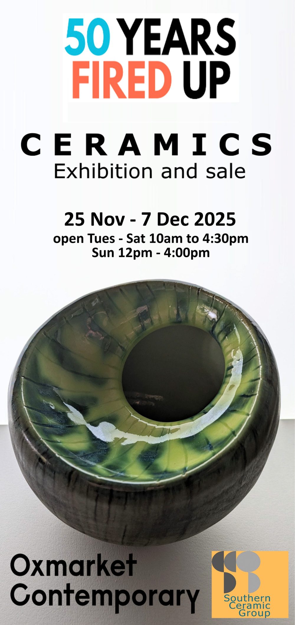 ’50 Years Fired Up’ showcases the work of over 60 Southern Ceramic Group members and includes the ‘Feed Your Soul’ installation where artists have made wall hanging ceramics in response to the installation theme. Their fascinating quotes reveal insights to their working practices.